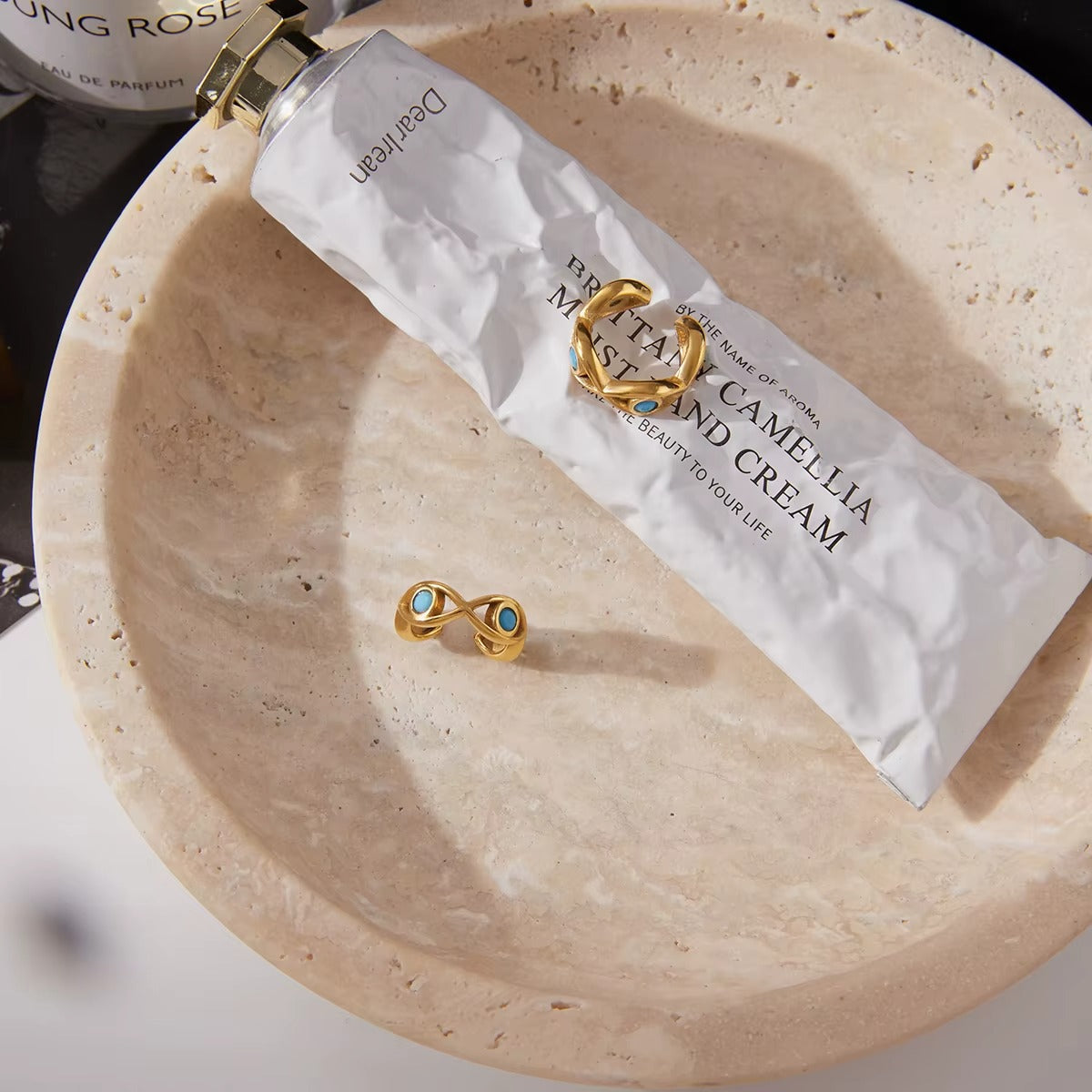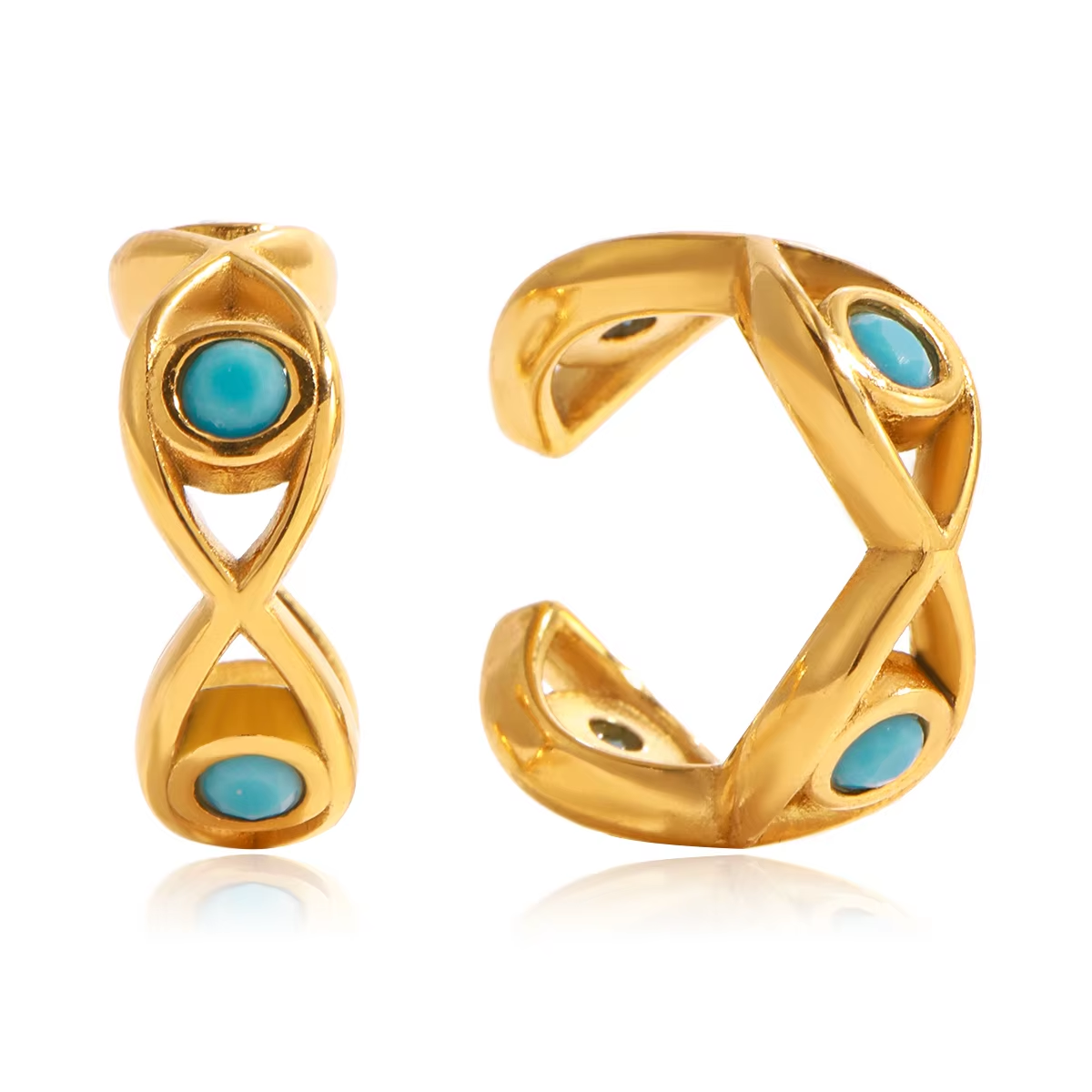 Minimal in size, maximal in charm — the Azure Loop Ear Cuff is your effortless touch of blue and gold elegance. Designed with a sleek infinity-shaped twist and turquoise stone accents, it adds subtle color and sophistication to your ear stack.