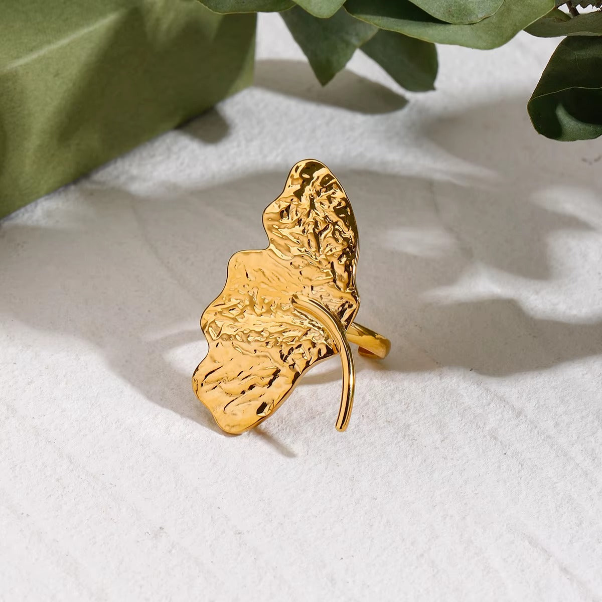Meet the Bloom Sculpt Ring — an artsy, statement-making piece that looks like it walked straight out of a runway moodboard. Its organic, petal-inspired silhouette adds a soft, sculptural charm to your fingers, while the bold gold finish makes it an instant conversation starter.