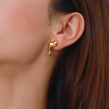 Gold, but make it melt. Lava Drop Earrings is a sculptural gold earring that looks like it's dripping straight from a dream. Made for statement lovers, these earrings hug the ear with bold, fluid curves — modern, minimal, and full of art-school energy.