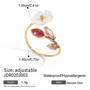 • Dimensions: 1.8 cm ring diameter, 1.05 cm flower charm