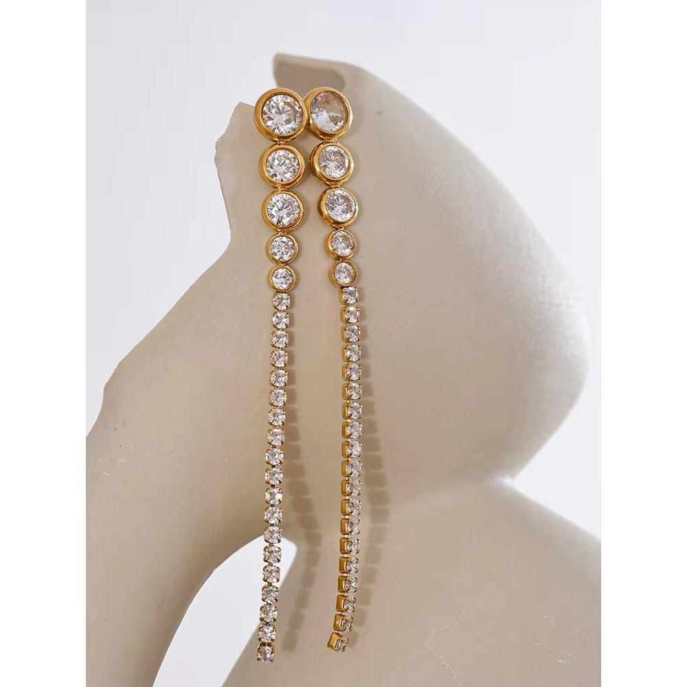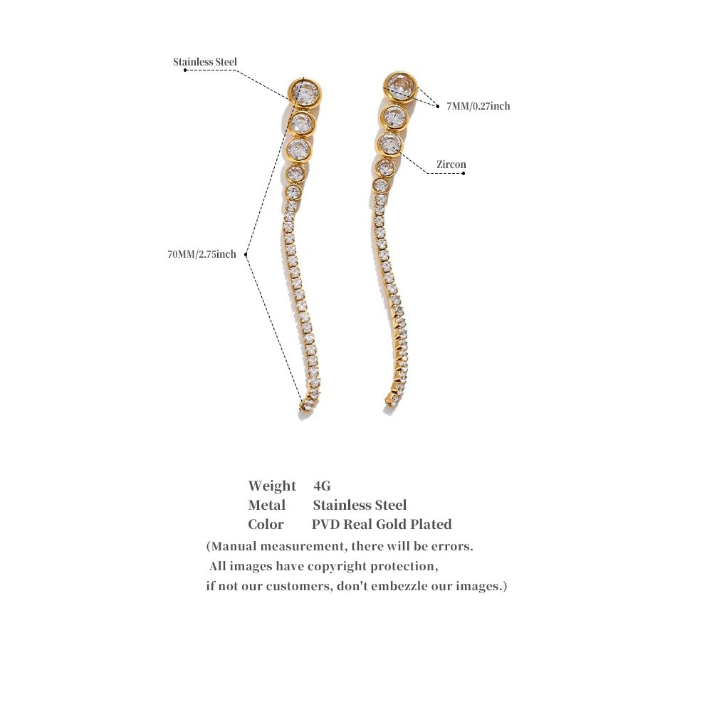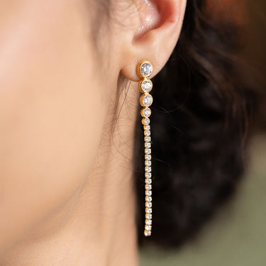 Sparkle Line Danglers with cascading crystals in waterproof PVD gold plated stainless steel