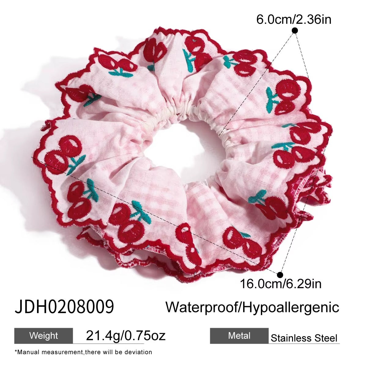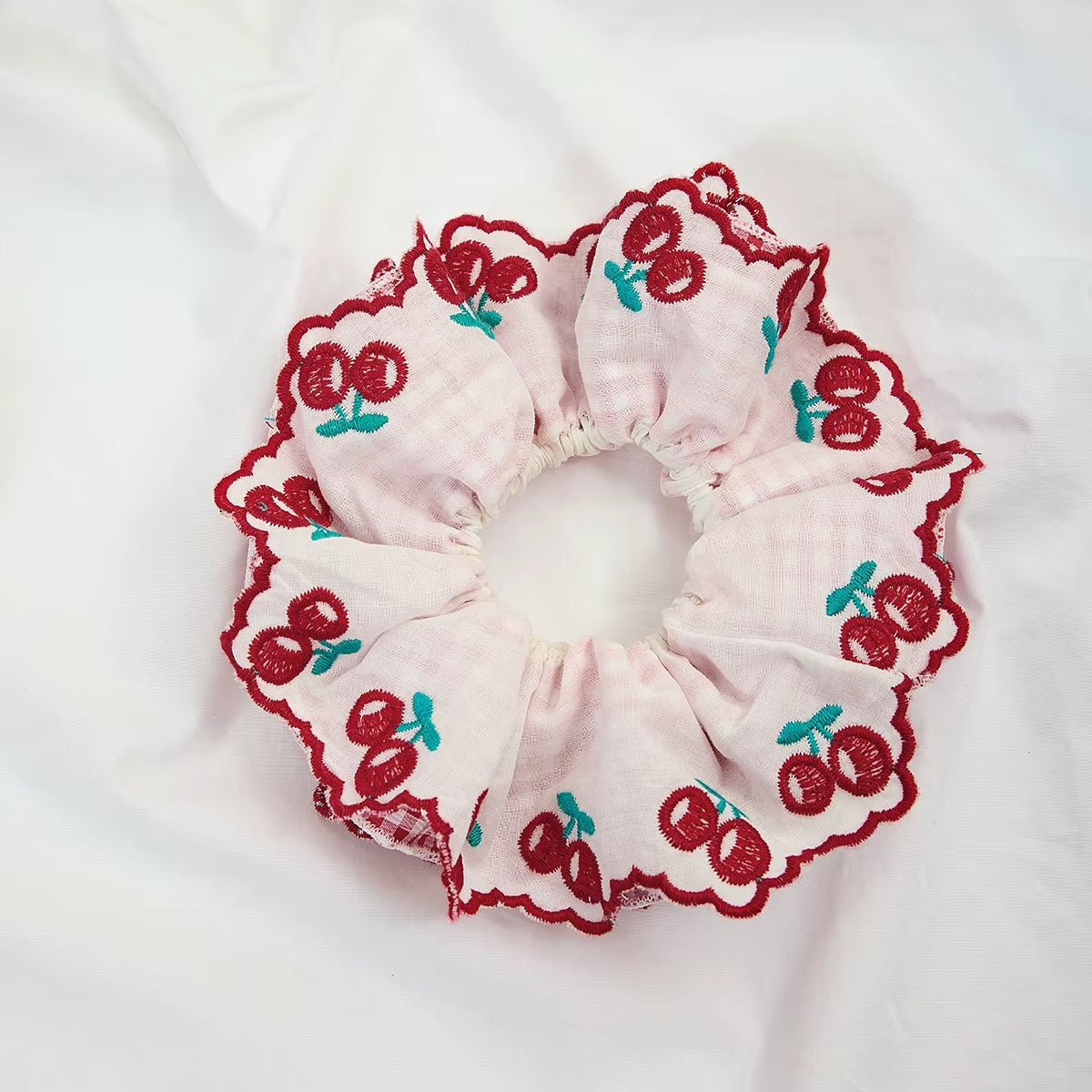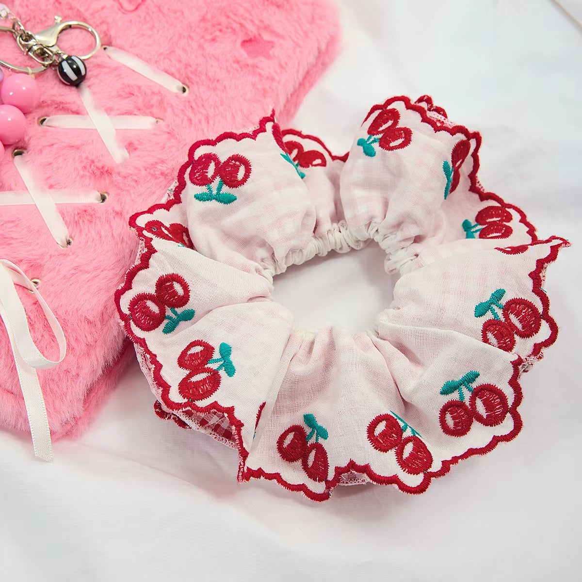 Embroidered with adorable cherries and finished with scalloped red lace, this oversized scrunchie is made to make your bun or ponytail stand out in the sweetest way possible. It’s soft, lightweight, and brings just the right mix of Y2K energy and Pinterest-core cuteness.