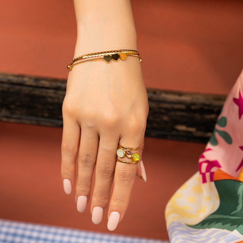 This one's for the color lovers. The Color Pop Ring features three glossy stones in an open band setting—perfect for when you want to add a playful pop to your stack. Bold, lightweight, and bright enough to be a whole mood.