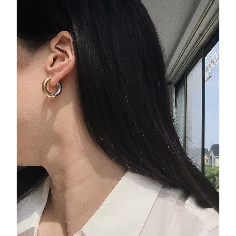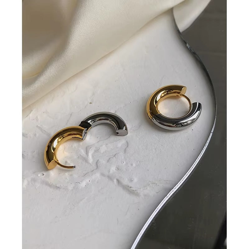 Two looks, one pair. Your Daily Switch Hoops are designed with a clever dual-tone finish—wear the golden side for a classic glow, or flip them to the silver side for a cool minimal vibe. Made from stainless steel with PVD gold plating, these waterproof and skin-friendly hoops are built to shine every day without fading.