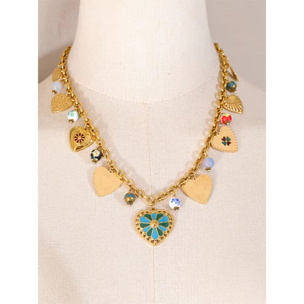Statement season is here, and she brought backup. With gold-plated hearts, floral enamel, ceramic beads, and glass drops—this chunky chain is basically a traveling jewelry box around your neck. Loud, lovely, and unapologetically extra. Bonus: It’s waterproof and skin-friendly.