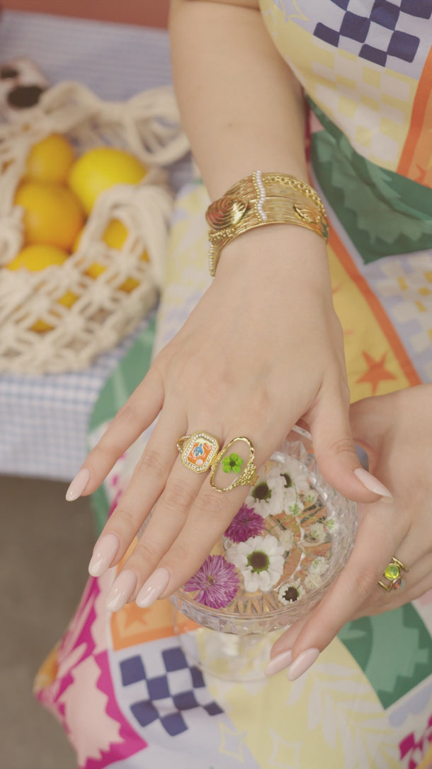 Meet your new obsession—Retro Pop Rings that scream fun, bold, and unapologetically you. With bright enamel motifs, playful color pops, and glittering crystal borders, these chunky signet-style rings make every gesture a style statement. Whether it’s a heart, cactus, sun, moon, or cherry—there’s one for every mood and vibe.