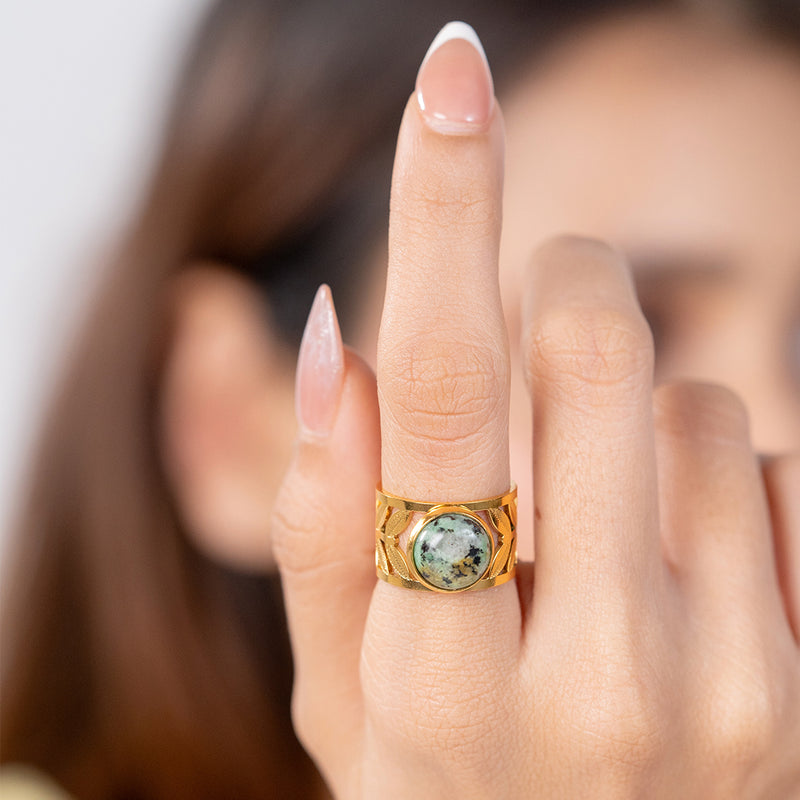 A piece that feels like it holds ancient secrets of the sea. The Ocean Relic Necklace pairs a raw-cut natural stone with a rich red accent, encased in an antique-style gold frame. Its vintage charm and earthy energy make it a soulful pick for days when you want your jewelry to speak without words. Limited pieces only — because not every story gets told twice.