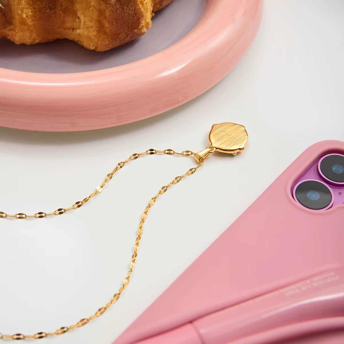 A gentle nod to timeless romance — the Rosabel Pendant captures the charm of a hand-painted pink rose framed in soft gold tones, accented with a dainty pearl. It’s delicate, feminine, and full of quiet grace — a piece that instantly softens any look, whether layered or worn solo.