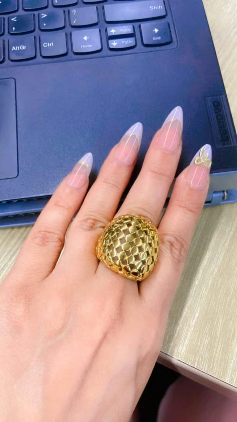 Design: Dome-shaped statement ring with honeycomb texture