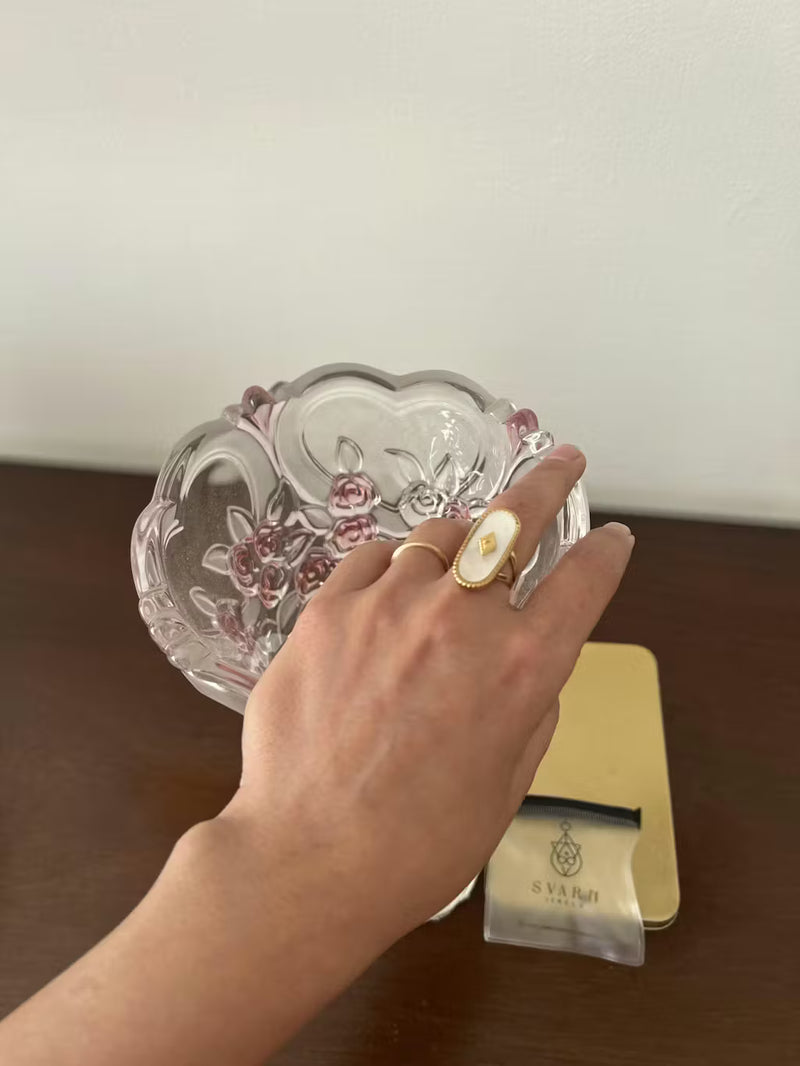 The Regal Ember Ring brings timeless elegance to your everyday look with its deep navy enamel base and antique gold detailing. Framed in a textured oval Lapis Lazuli with a central gold diamond, it’s bold, classy, and full of character. Wear it solo or stack with your faves — it steals the spotlight either way.